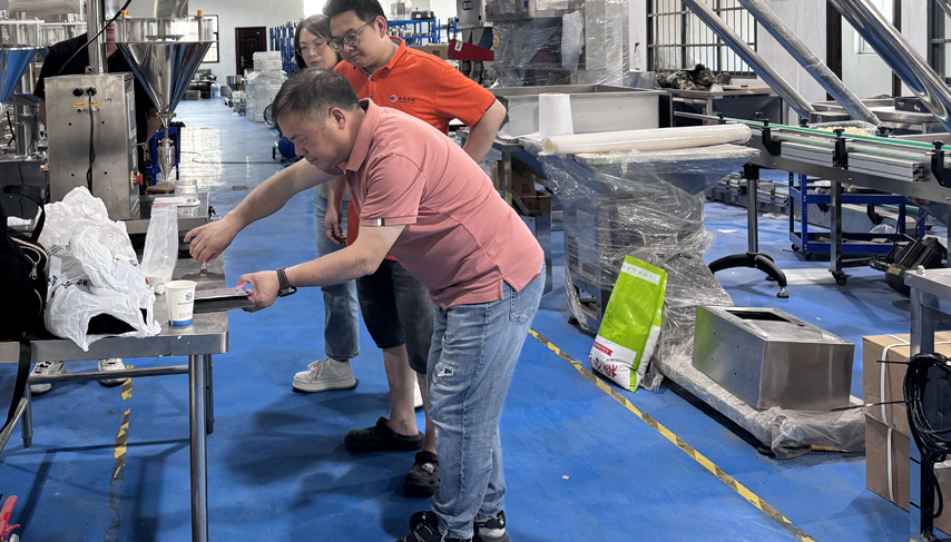 商丘客戶兩臺花生包裝機調試現(xiàn)場
